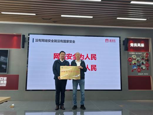 最后,长江职业学院纪委书记张书平同志总结发言,他说:今天,我们以“筑牢网安防线,党建赋能创新”为主题,齐聚国家网络安全人才与创新基地,共同参与这场跨校地企的联合主题党日活动,既是对习近平总书记关于网络强国重要论述的深化学习,更是对党建与网络安全产业融合发展的生动实践。