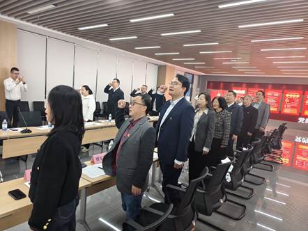 参观完毕,在网安基地党建活动区,面对鲜红党旗,全体党员重温入党誓词,彰显了教育工作者与科研工作者“为党育人、为国育才”“科技报国”的坚定信念。